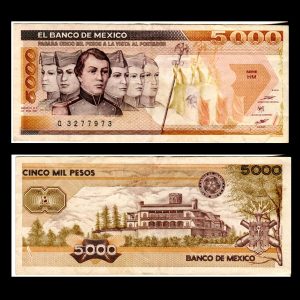 Billete 5000 Pesos Niños Heroes 1985 – Condición XF (Extra Fine)