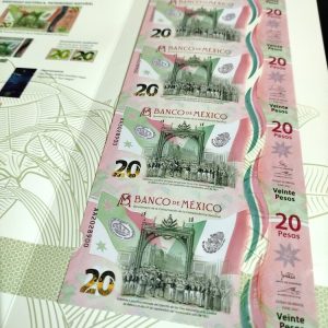 5 Billetes sin recortar $20 Pesos «Consumación de la Independencia» con Folder Oficial de Banco de México