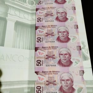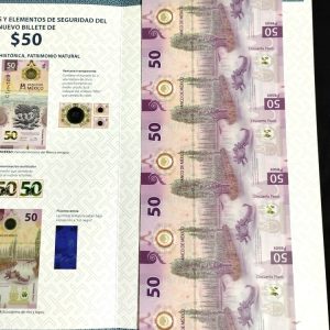 5 Billetes sin recortar $50 Pesos Ajolote con Folder Oficial de Banco de México