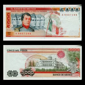 Billete 5000 Pesos Niños Heroes 1985 – Condición XF (Extra Fine)