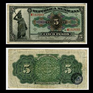 Billete 5 pesos República Mexicana Gob. Constitucionalista «Cuauhtémoc» – Condición «F» (Fine)
