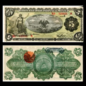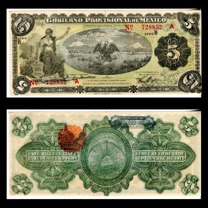 Billete Gobierno Provisional de México 5 Pesos – Condición aUNC – Casi Sin circular