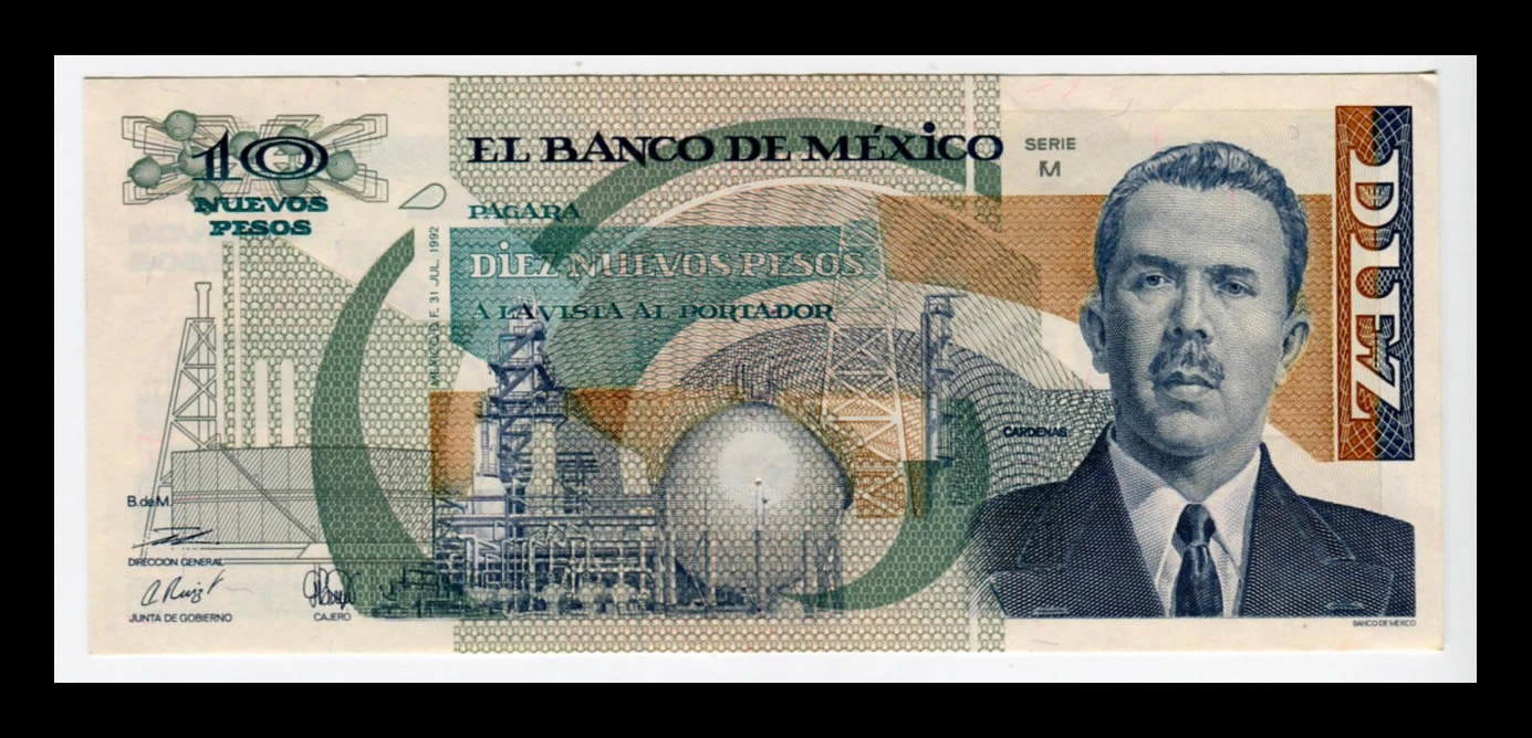 Billete 10 Nuevos Pesos Lázaro Cárdenas