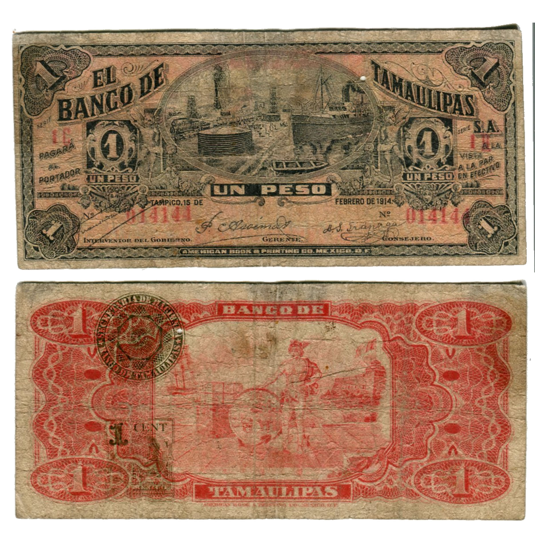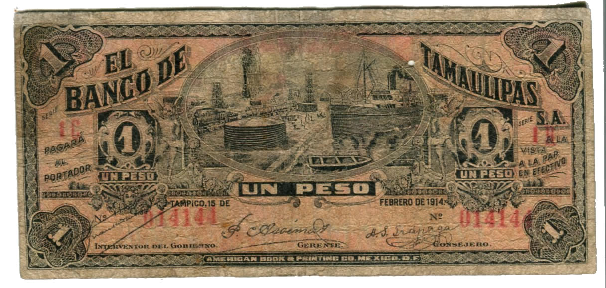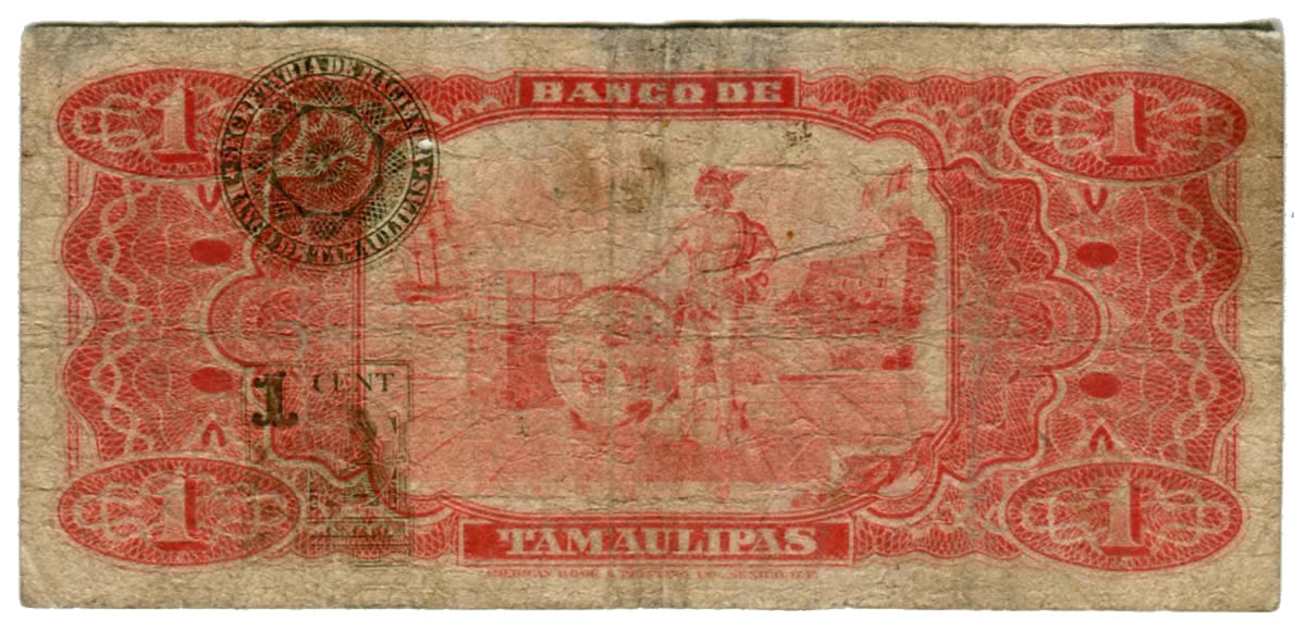 Billete Banco de Tamaulipas 1 Peso – Condición VG (Very Good)