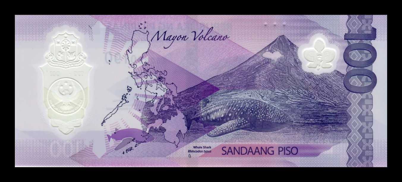 Este billete de 100 piso de Filipinas forma parte de la serie moderna emitida por el Bangko Sentral ng Pilipinas, destacando por su diseño enfocado en la biodiversidad y paisajes naturales del país. Está elaborado en polímero, lo que le brinda mayor durabilidad y seguridad.