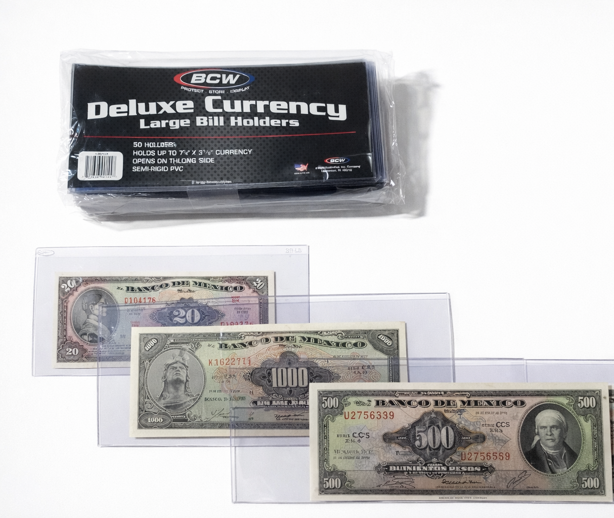 Mica BCW para billete grande – Medidas Largo 20.3 cm X 9cm