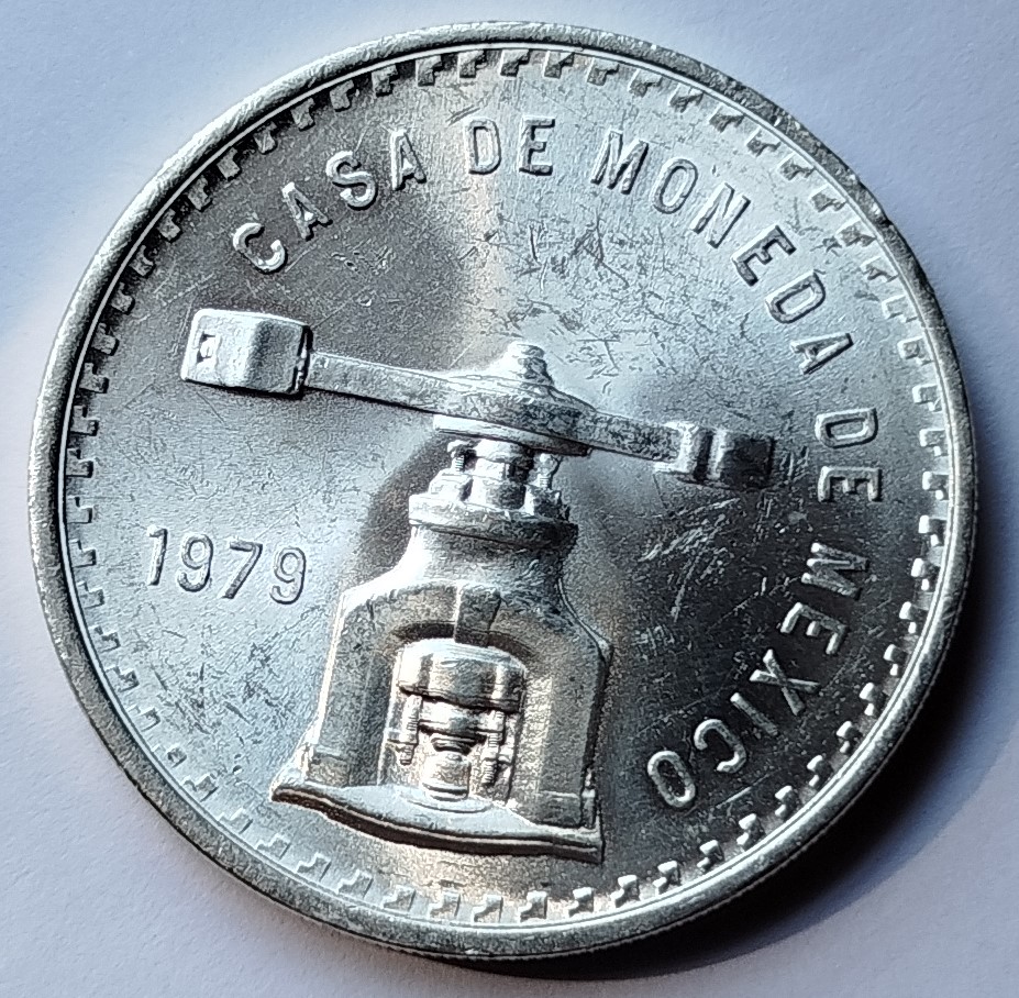 Moneda de plata emitida por la Casa de Moneda de México en 1979, reconocida internacionalmente por su alta pureza y peso estándar. Esta pieza pertenece a una de las primeras emisiones modernas mexicanas destinadas al ahorro e inversión en plata, además de ser muy valorada en el ámbito numismático.