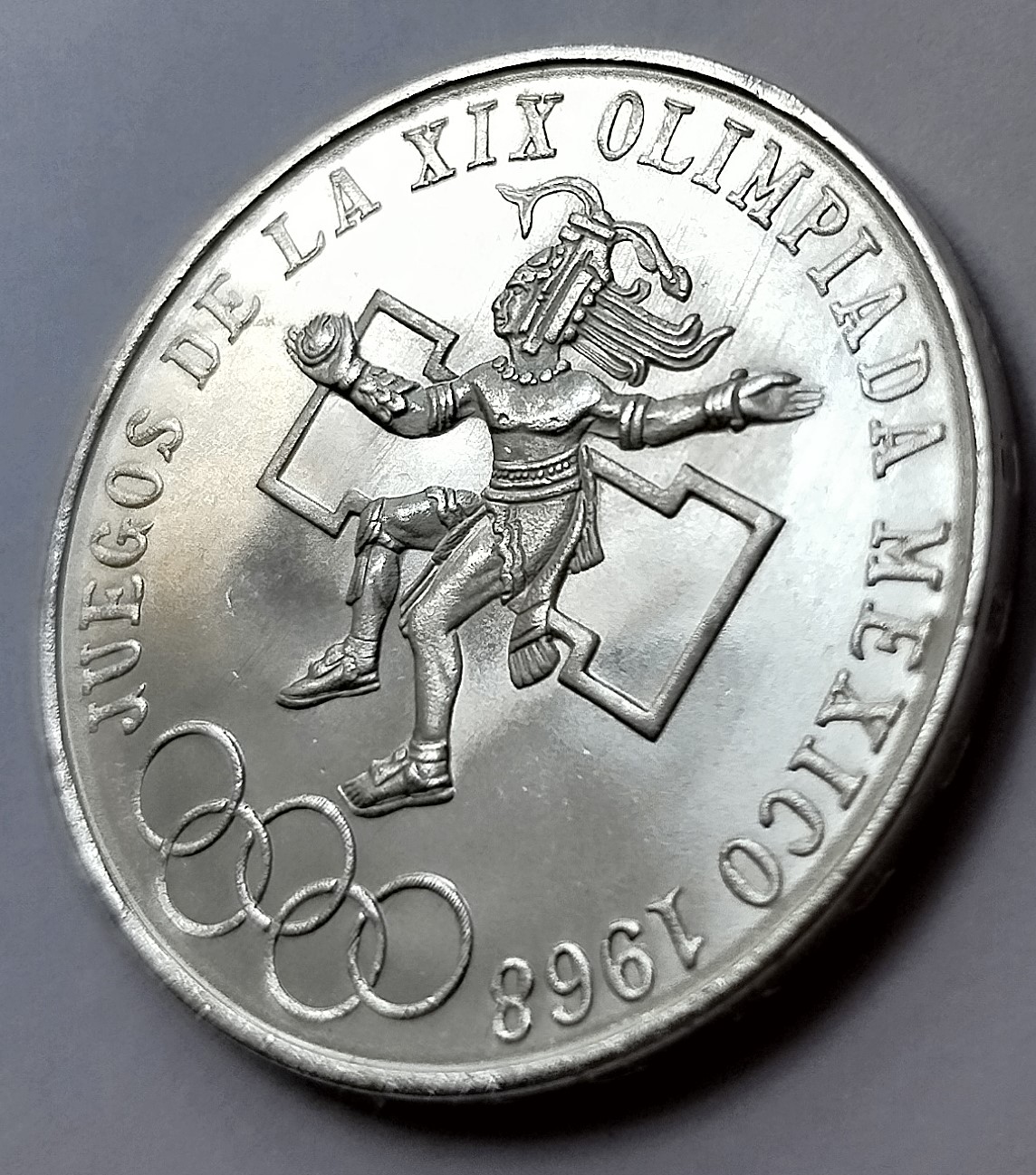 Moneda conmemorativa emitida por los Estados Unidos Mexicanos con motivo de los XIX Juegos Olímpicos de México 1968, uno de los eventos deportivos más importantes en la historia del país y el primero realizado en Latinoamérica.