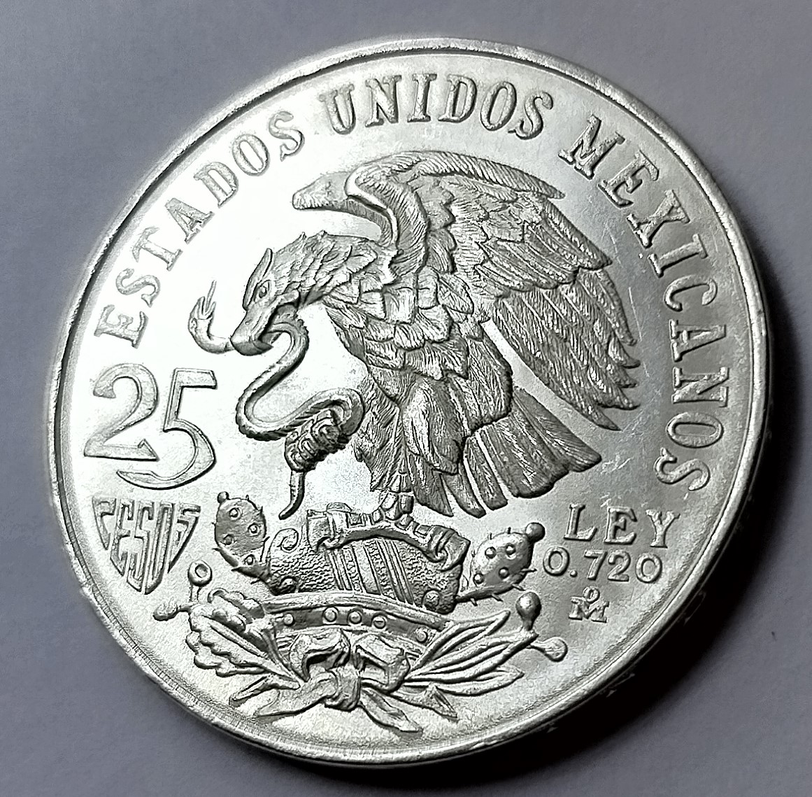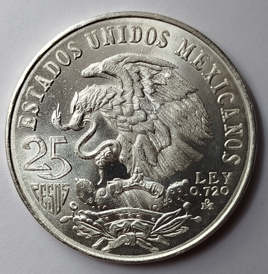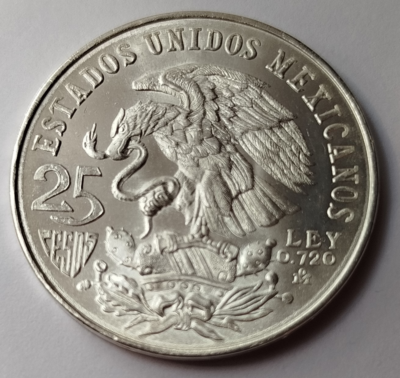 Moneda Olímpica 25 pesos 1968 -Plata Ley 0.720- Condición usada