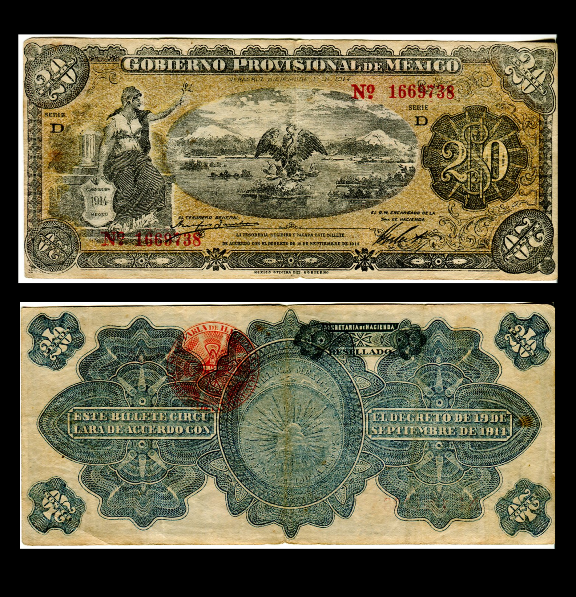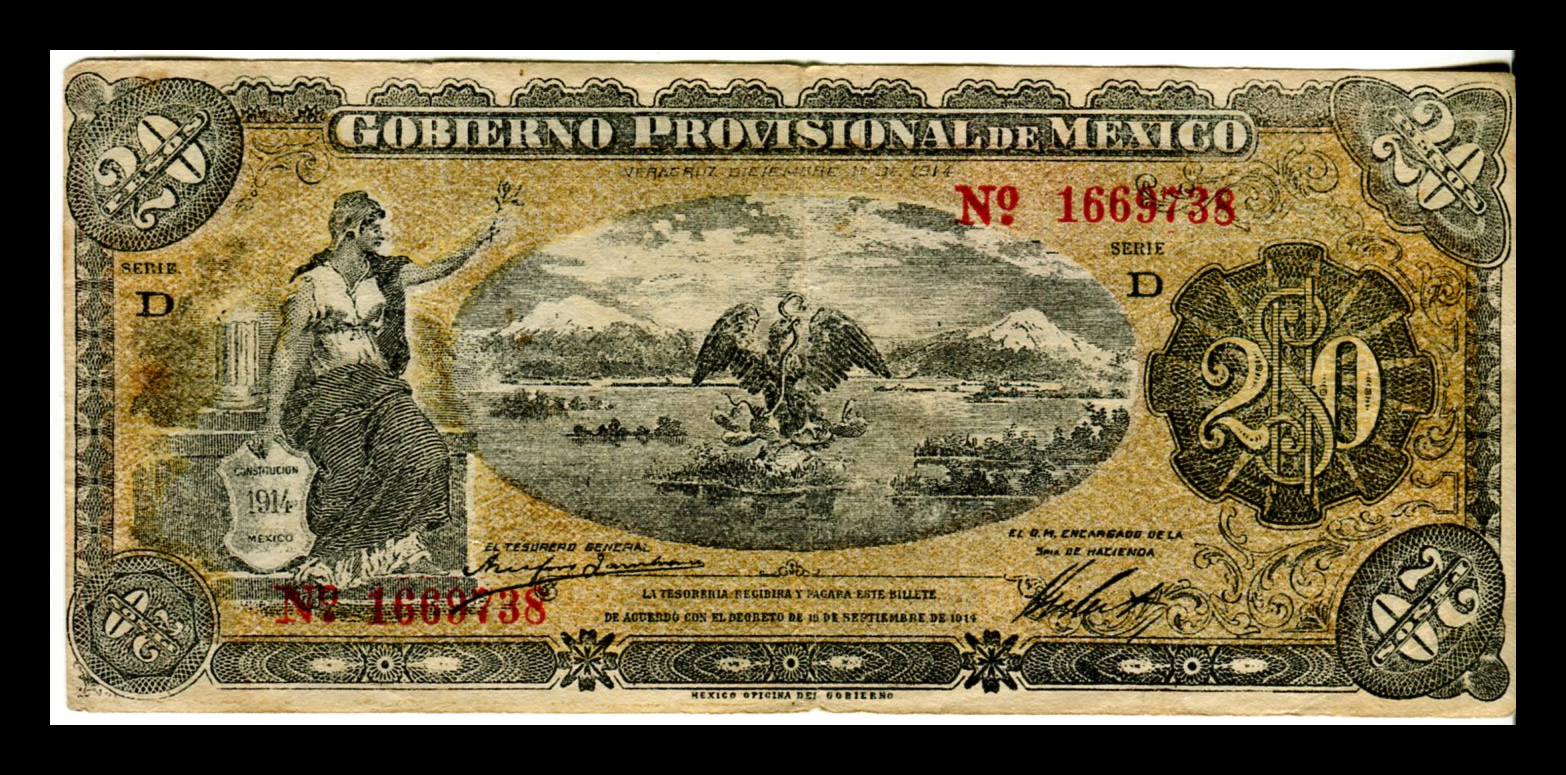 Billete Gobierno Provisional de México 20 Pesos Año 1914 Veracruz Condición: «F» Fine