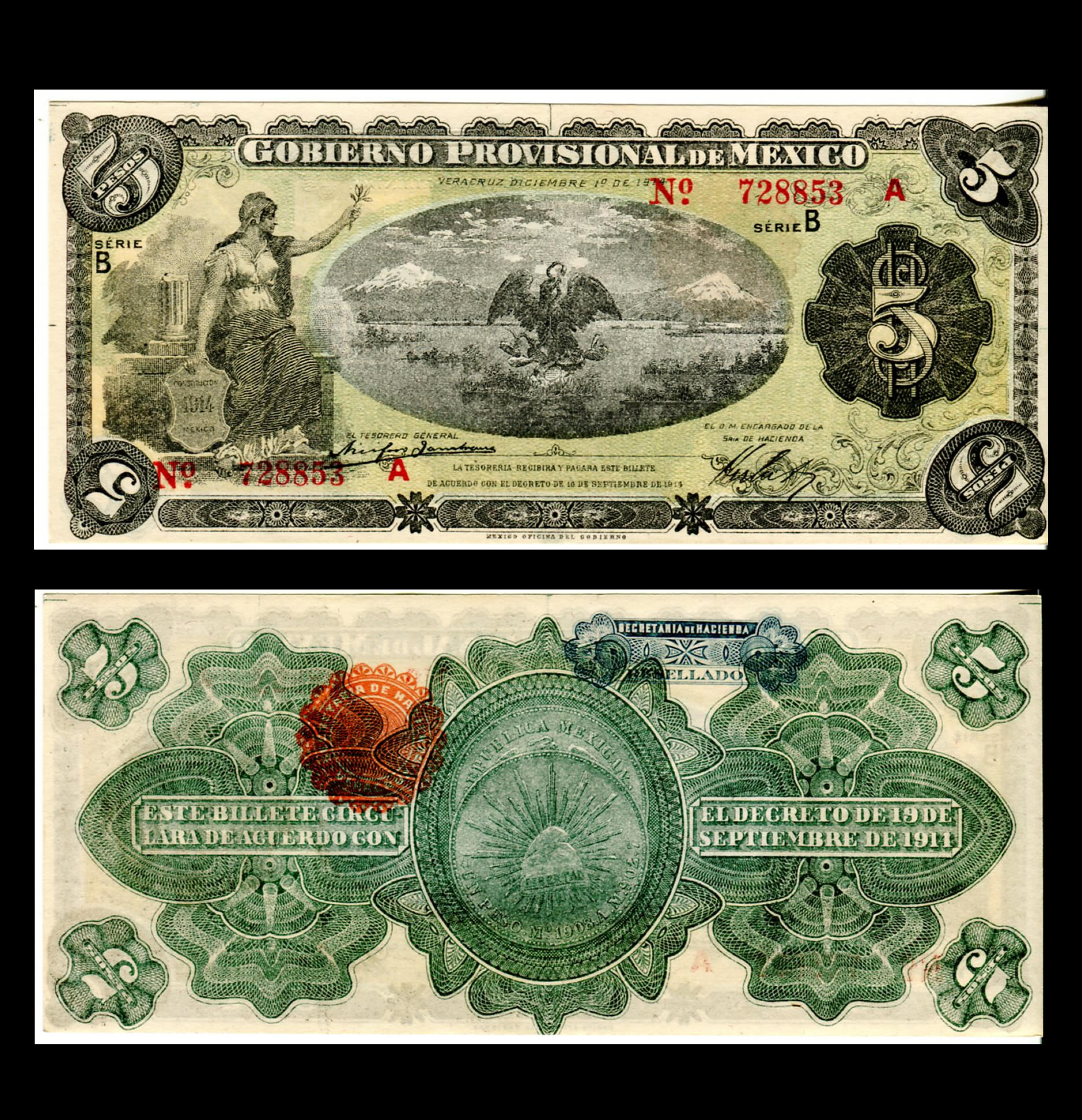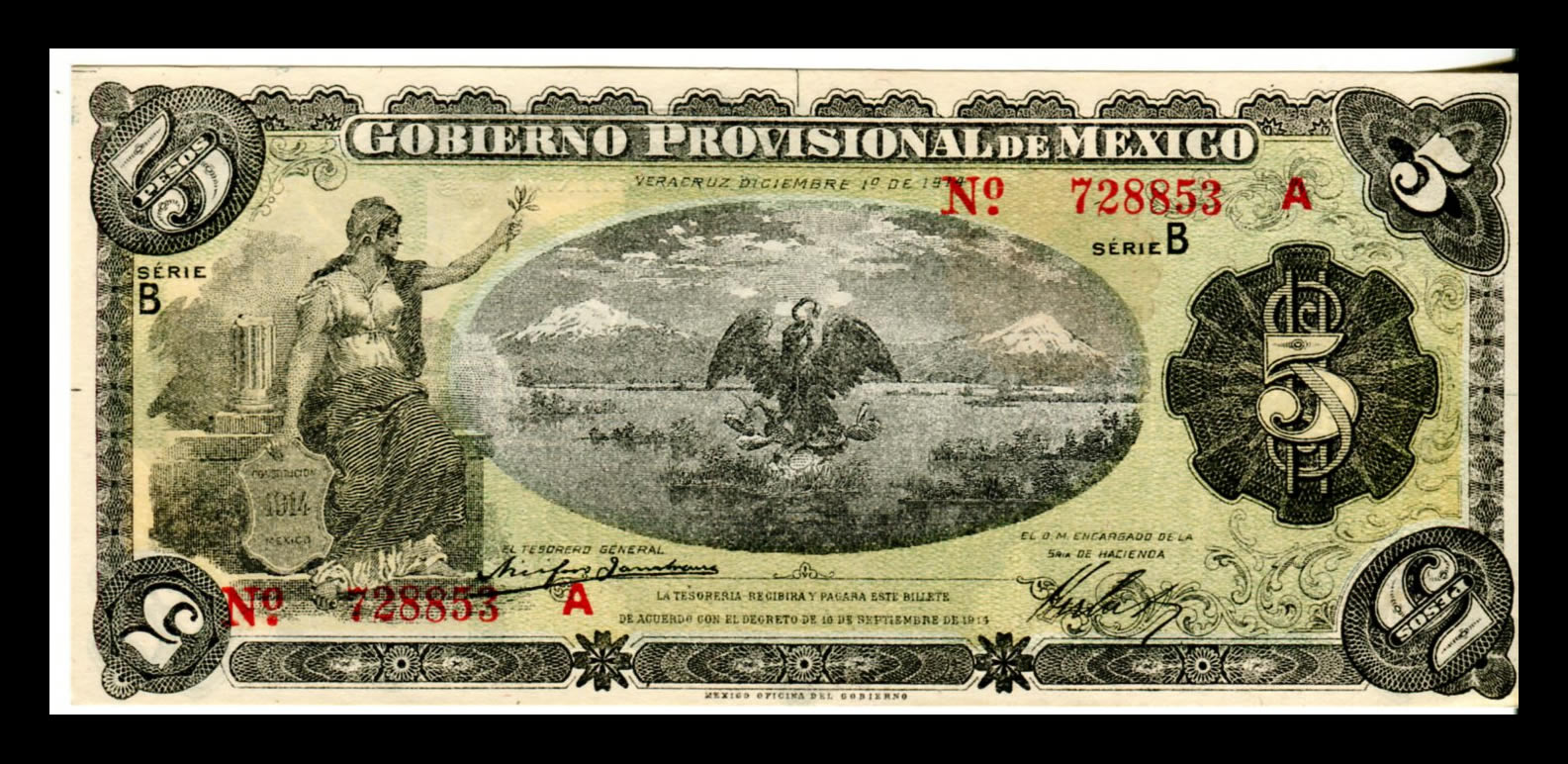 Billete Gobierno Provisional de México 5 Pesos – Condición aUNC – Casi Sin circular